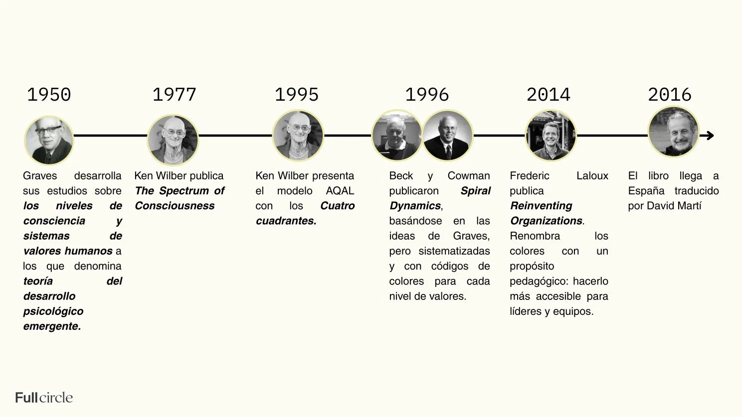 Cuando Frederic Laloux publica Reinventar las Organizaciones, traduce toda esta herencia teórica al lenguaje empresarial. Su propuesta simplifica los colores de Spiral Dynamics y los adapta al contexto de la gestión organizacional, dando origen a los colores organizacionales: