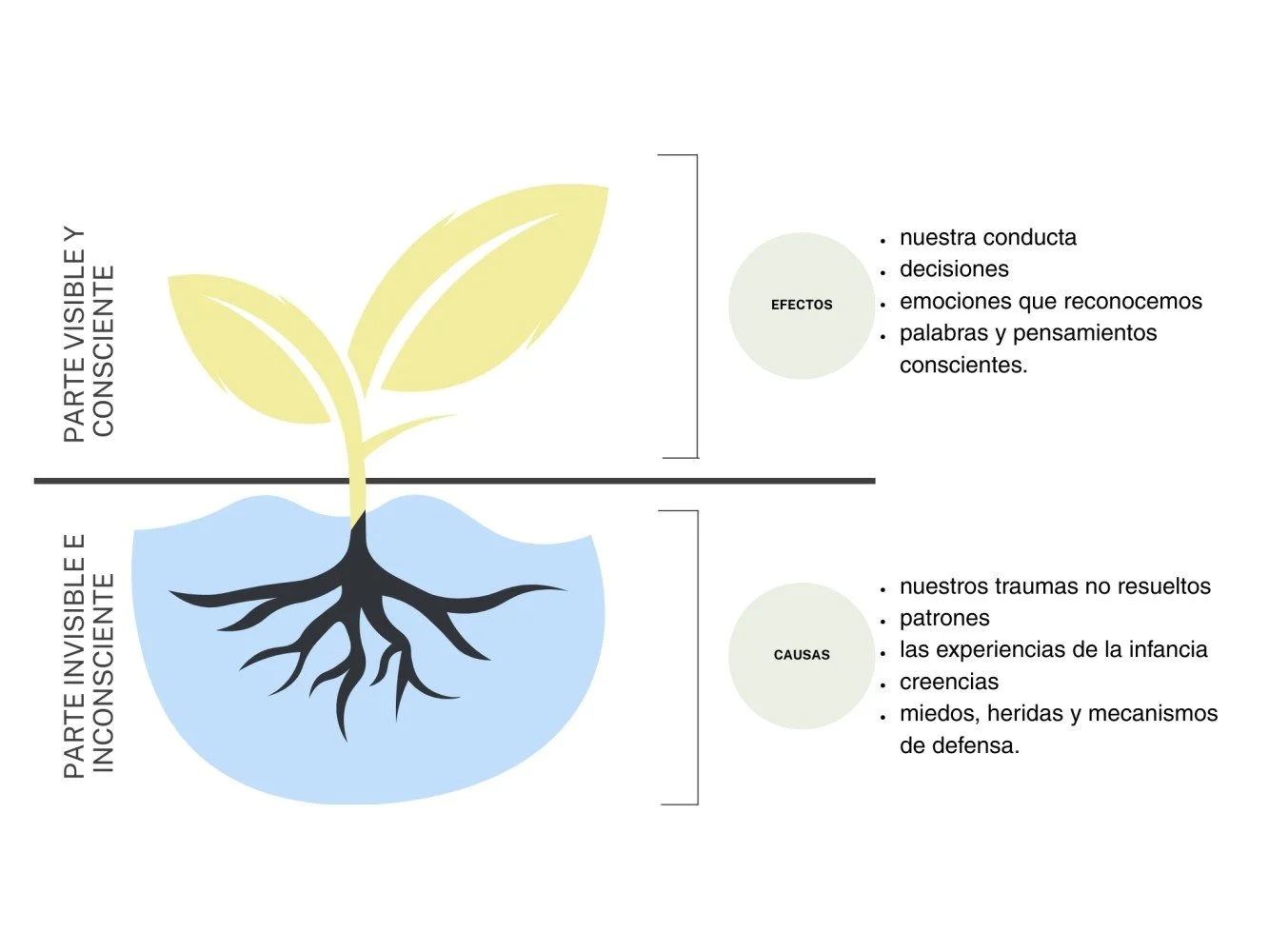 La mente consciente, la parte racional con la que creemos operar, representa solo una pequeña fracción de nuestra actividad mental. Es analítica, deliberada y lenta. La parte inconsciente, en cambio, es rápida, automática y profundamente emocional. En ella se almacenan nuestras experiencias tempranas, creencias aprendidas, mecanismos de defensa y patrones relacionales. No responde a la realidad tal como es, sino a cómo aprendimos a interpretarla.